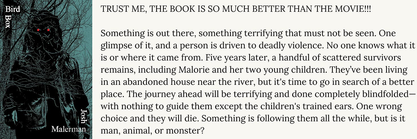 book pasta10 Horror Book RecommendationsBecause I refuse to admit that Spooky season is over...Megan GilbertNov 14, 2025631ShareWhether you like it or not, I have perfect taste in books. So you will either love these too or…you’re wrong.Haunted Housesclick to shopclick to shopShareOn Griefclick to shopclick to shopBody Horrorclick to shopclick to shopSubscribeHaunted Dadsclick to shopclick to shopMotherhoodclick to shopclick to shopThanks for reading weird pasta by Megan Gilbert! Subscribe for free to receive new posts and support my work.Subscribe